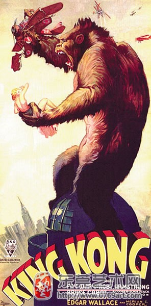 1933年拍摄的美国电影《金刚》(King Kong),其中一款海报在1999年以24.45万美元售出。如图所示则是同一系列中的另外一款。