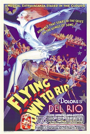 1933年拍摄的美国歌舞片《飞到里约》(Flying Down to Rio)曾经收获当年的奥斯卡原创歌曲提名。2008年,单张海报被卖出23.9万美元的高价。有趣的情景和丰富的画面设计使得其看上去简直像一张1930年代的飞机旅行广告画。