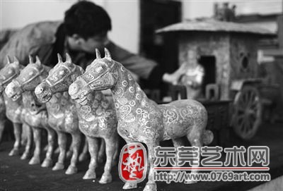 东汉马踏飞燕、东周天子驾六、战国方鼎、春秋莲鹤方壶……一件件仿古青铜器从烟涧村的家庭作坊走出,销往全国及多个国家。