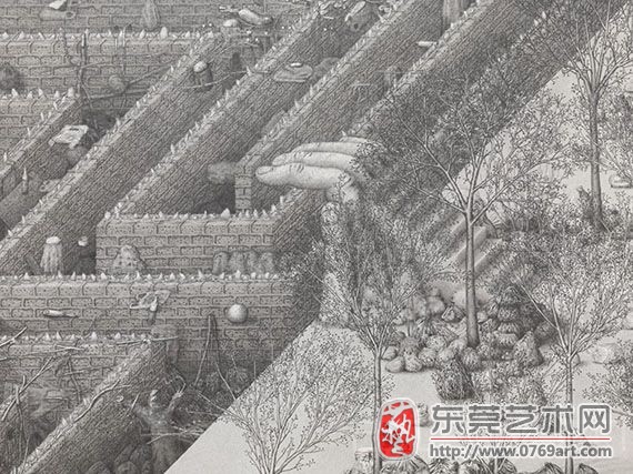 保罗·诺布尔(Paul Noble)获提名的展览为去年11月至12月间在高古轩画廊举办的展览“Welcome to Nobson”,这场展览主要展出了保罗·诺布尔(Paul Noble)新创作的一系列素描及雕塑作品。他那些用石墨绘制而成的、错综复杂的图纸描绘了由迷宫般的建筑与荒凉的地貌组成的Nobson Newtown,细节详尽。