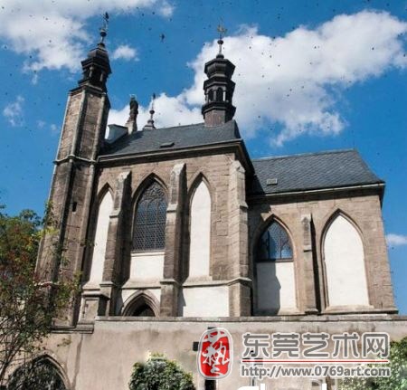 上午时分,教堂在明媚的阳光和蓝天白云的映衬下显得格外醒目。这座建于公元14世纪的古老建筑绝对算得上是波西米亚地区多灾多难的历史见证者。从中世纪开始的几百年间,苦难一直伴随着这里,从充满血腥与杀戮的胡斯战争,到压抑人性而漫长难熬的中世纪,以及险些让欧洲灭亡的黑死病。就在这座教堂中,这些历史被一块块白骨书铭刻着。