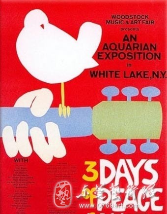 1969年伍德斯托克音乐节的海报《三天的音乐与和平》