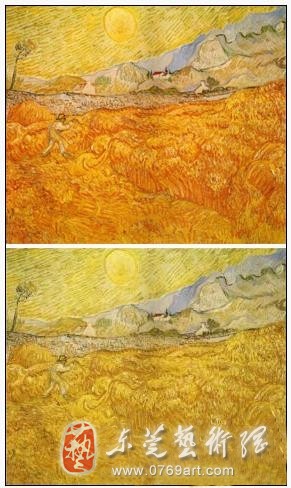 上图是梵高的画面,下图是过滤掉红色的画面