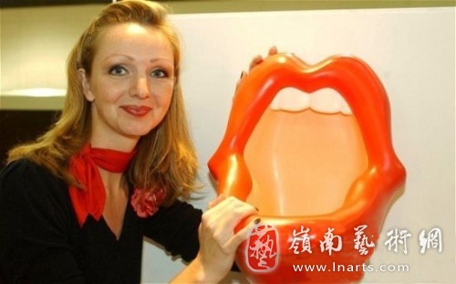 荷兰女艺术家施金多(Meike van Schijndel)与自己设计的形似张开嘴巴的香艳红唇小便斗。