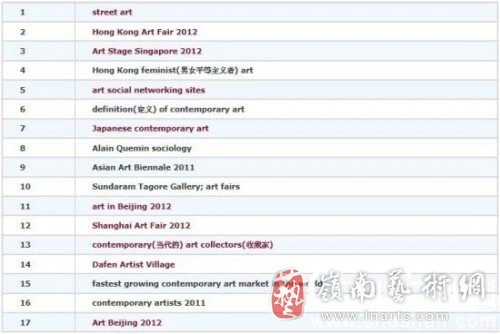 艺术雷达公布2012年1月至6月谷歌搜索最多的17个艺术关键词,这些热门搜索间接显示出读者的关注点和艺术的发展趋势。