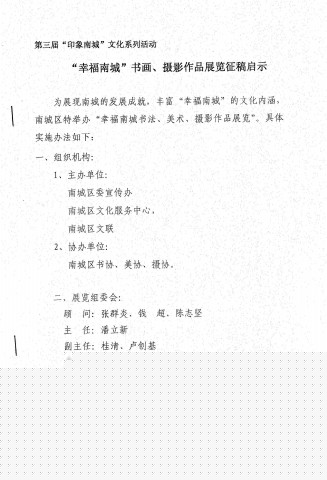 三、参展对象:凡在南城工作、学习和生活的作者均可投稿。