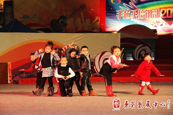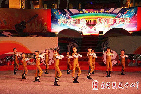 1月16日晚,由东城文化中心手拉手艺术培训中心组织的“美好童年”迎春晚会暨2010年秋季班汇报演出在音乐喷泉舞台演出。培训班的小学员们表演了儿歌、故事、舞蹈、相声、诗朗诵、童话剧表演等近20个节目,受到广场休闲的近千名市民的观看。这也是东城文化中心“周末艺苑”平民舞台的第41场演出。