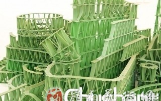 据悉,该雕塑的制作原理与用纸牌搭房子的原理相同。由于材料具有可塑性,艺术家成功搭建了这一复杂几何结构,其中每座高塔间都用螺旋形过道来连接。