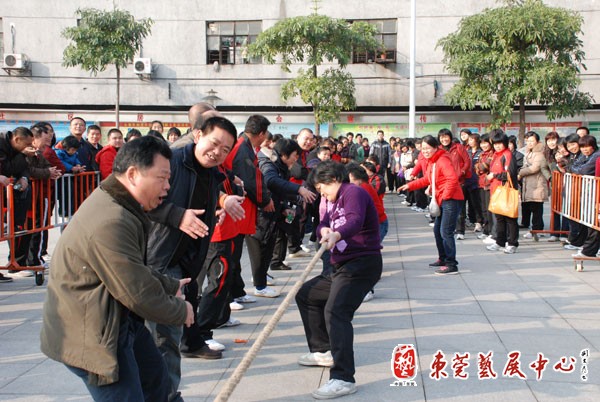 1月8日上午,同沙社区居委会广场彩旗飘飘,热闹非凡,东城区第六届文化体育艺术节拔河比赛在这里举行。比赛分男女组进行,16支