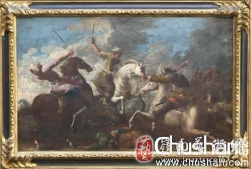 格奥尔格·菲利普·卢根达斯(Georg Philipp RUGENDAS 1666 - 1742) 出生于奥格斯堡, 是一位战役军事类型的德国画家和雕刻家。他的作品基本来源于其真实的战争体验,因此创作出的作品更具震撼力,他的九幅油画战争作品甚至被当作"样本"收藏于不伦瑞克美术馆(Brunswick Gallery),而他名为《骑兵的战争》的作品则是他的作品中最值得称赞的部分。《骑兵的战争》更分为两个系列,这幅与鲁本斯的《劫夺吕西普斯的女儿》可媲美的作品则是《骑兵的战争》第二系列。