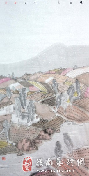 周菁:我这“田园系列”创作风格是从我的“梦境”中来,我喜爱这山乡田园生活。宁静的、自然的山乡田园是我一直向往的地方。画家面对自然的心态,非常重要。你须得尊重你的对象,它跟你一样,也是具有灵性的。山石是具有灵性的,只有那些将自己心灵深入山水里的人,才能真正感到山水的灵性。我喜欢大自然给予人类最宁静的山乡田野,喜欢那些未经沾染纤尘的纯净,那是一种心灵的叩问,对我的艺术的一种净化。