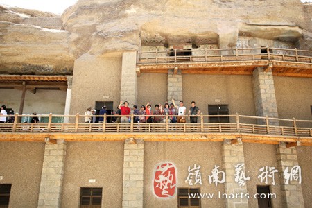 在莫高窟采风中,众位艺术家欣赏了开凿于北魏、西魏、隋、盛唐、晚唐、宋、西夏、元的十余座洞窟参观,观赏了释迦摩尼涅槃卧佛造像,不同时期的弥勒佛、“维摩诘经”、“佛祖饲虎图”、“九色鹿”等经变故事绘画、及藏经阁等集建筑、雕塑、绘画为一体的立体艺术,了解了中国古代的政治、经济、文化、宗教、民族关系、中外友好往来等历史文化信息。参观结束后,艺术家们纷纷感叹古人精湛的技艺、无穷的智慧创造的艺术杰作,虔诚的接受艺术圣地的洗礼,吸收了敦煌莫高窟艺术的精华。同时,馆内讲解员老师也为采风团众艺术家美术专业的渊博所折服,被老师们虚心好学的精神打动,也更加认同成功文化集团“促进甘肃文化艺术交流,着力打造文化艺术交流平台”的倡导。