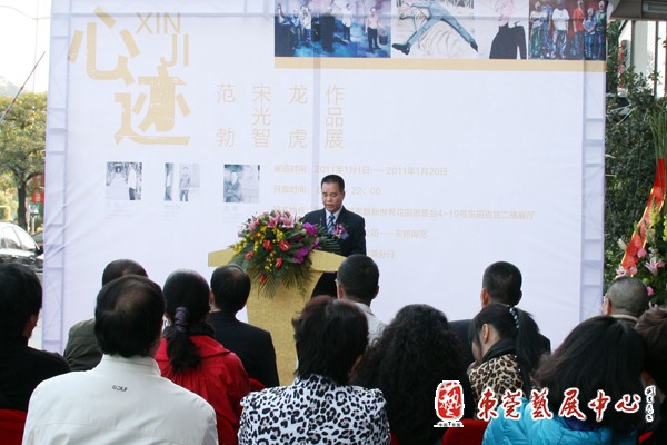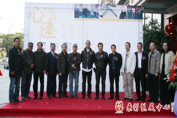 由广州美术学院油画系主任、教授范勃、广州美院研究生处处长、教授宋光智和广州美院教育学院院长龙虎共同举办的“心迹——范勃、宋光智、龙虎作品展”1月1日在东城区东桥陶艺二楼展厅开展。广东南方电视台台长蔡照波、广州美院副院长王跃生、广东美协副主席、广州美院中国画研究院副院长李劲坤、广州美院中国画学院副院长陈舒舒、东城区委书记、东城区人大联络委主任黄少文、莞城区委书记、东城区人大联络委主任王检养、常平海关副关长吴加林、万江区委副书记、东城区办事处主任吴志刚、长安镇副镇长郭炳巷、东城区办事处副主任张小凯、东城文化中心主任康健和来自广州、东莞的美术界人士200多人出席了开幕式。东城区委书记、东城区人大联络委主任黄少文、中山大学传媒学院副院长、广州美院客座教授杨小彦、广东南方电视台台长蔡照波等在开幕式上讲了话。