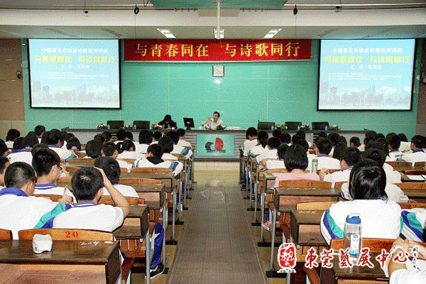 中国作家协会赴东莞东城采风团在东城采风期间,为东城学生和文学爱好者举办了系列讲座,受到听众热烈欢迎。