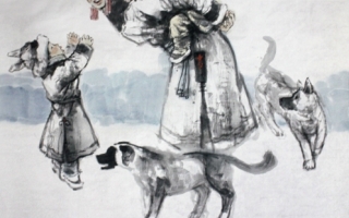 姜荣慧的国画基调是传统式的,简约凝重、构图严整、墨色黑白对比、形象变形的夸张等都是为了使作品画面增强了艺术的美感,能够使更多的观众产生共鸣。他的画风质朴、平实,直逼本真,如实地刻画带有原生态的民族特征,不枝不蔓,不追求游离于主体之外的附丽因素,如婀娜多姿的身姿,甜美的笑靥;如流畅的线条,明丽的色彩等等。于朴拙的造型中,显示了人物生存的坚韧和人性、人格的力量,体现了生存的真实感和生命的苍凉感。