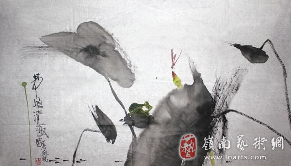 米金铭的“新水墨”融进西方写实造型,使水墨获得新的写实能力而又不失传统品味。为喜爱中国水墨艺术的收藏者多了一份新的有价值的珍品。米金铭在创作中充分利用西方绘画体积造型语言,结合光、影为人物塑造寻求新的图示,给人一种全新的视觉现象,采用版画的构成方式营造出新的视觉效果,以传统水墨浸润泼染的特征性夸张造势。他大胆借鉴西画的造型方式与传统水墨泼染,没骨画法相结合,创造出了一种新的意境,但又蕴含了东方的文化精神。