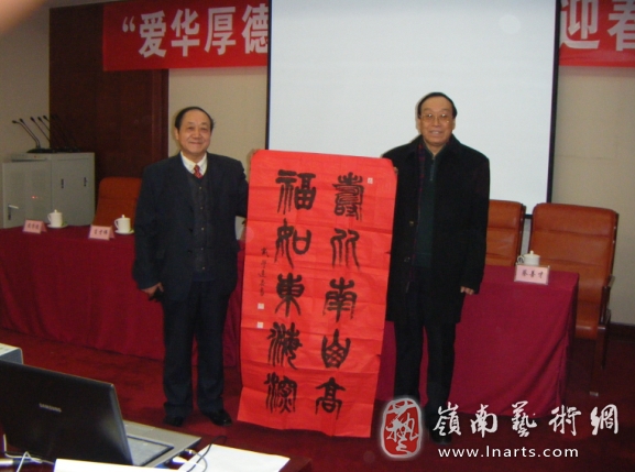 书法家戴学速为中国老龄事业发展基金会理事长、华英援助基金管理委员会主任、民政部原副部长李宝库赠送作品