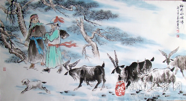 巨潮裕固族风情人物画作《裕固小姐妹》