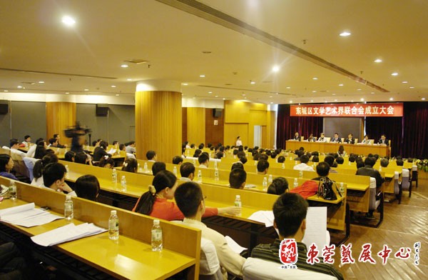11月10日,东城文艺爱好者迎来了文艺生活中的一件大喜事,东城区文学艺术界联合会正式成立了。当天上午,在东城区行政大楼举行了隆重的成立大会。东城区委书记、区人大联络委主任黄少文、东莞市文联主席林岳、专职副主席宋媛、东莞市文广新局副调研员何环珠、周汉标、东城区委委员吴沛林和东莞市文联所属各协会的负责人出席了大会。来自东城区各社区、学校、企事业单位的文艺爱好者和东城区文艺协会负责人共500多人参加了会议。