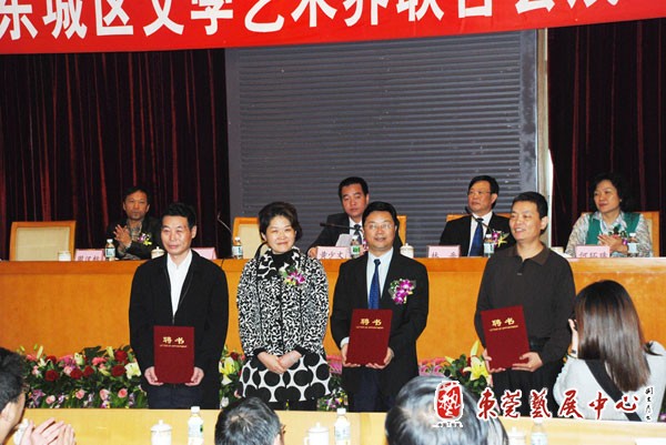 会上,东莞市文联专职副主席宋媛宣读了东莞市文联关于批准成立东城区文学艺术界联合会的批复。接着,市、区文联领导为东城区文学艺术联合会第一届主席团成员颁发了聘书。