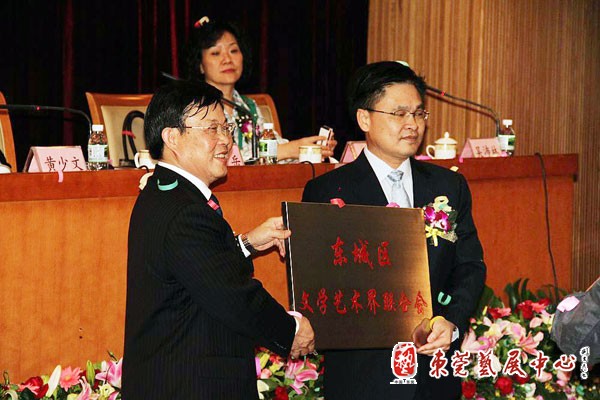 东莞市文联主席林岳也发了言,他高度评价了东城近年来取得的丰硕成果,认为东城人才济济,基础扎实是东莞文艺工作的重镇,他还系统地阐述了文联的性质及其职能,并就文联在新形势下的工作重点作了精辟分析。随后,林岳主席向东城区文联主席吴沛林授“东城区文学艺术联合会”牌匾。至此东城文学艺术事业翻开了新的一页。