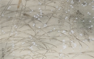 本次展览正是在多年探索的基础上再次集中展示诸位老师近期的探索角度和方向,也为今后的持续发展提示了一些关键要素:吴冰老师的花鸟画仍然在宋人意象的基础上一步步试验新色彩的语汇,我们注意到,其色彩关系愈加简练,整体布局的呼应性安排越来越成熟。范琛的现代彩墨山水画为当今的山水画坛带来了完全不一样的新鲜空气,用传统画风从未出现过的团块色彩语言却道出了千百年来中国绘画的典型意境美感,他正在探索从更为复杂的画面结构中找到突破点,完善笔墨与彩墨之间的和谐美。付爱民的云南少数民族人物仍然是他作品中的主角,他在从两个似乎是不同的角度——没骨和线描淡彩一起入手,而表现的审美意象却是完全相同的,使景观与人物的美感表现更为纯熟。郑庆余的当代工笔创新正在沿着原有的路线继续实践着,充分发挥了他对现代影像与画面之间的互渗,从时尚元素中汲取灵感,注重光影和色彩对人物形象美感塑造的作用,韵味浓重。蔡萌老师也是与九宫阁合作了一段时间的画家,他继续在传统山水画语言中寻找灵感支柱,以古代景观切换到自己笔下,以对经典重温的方式来挖掘自己的新艺术品性。任春燕老师的新花鸟画追求简淡素雅的纯净意象,有传统工笔画的疏淡意境,情绪温婉,颇耐寻味。焦洋老师的新工笔画更追求当代绘画在色彩表现力上的探索,并完全变革了传统绘画的造型经验,形象稚拙而可爱,具有鲜明的时代特性。