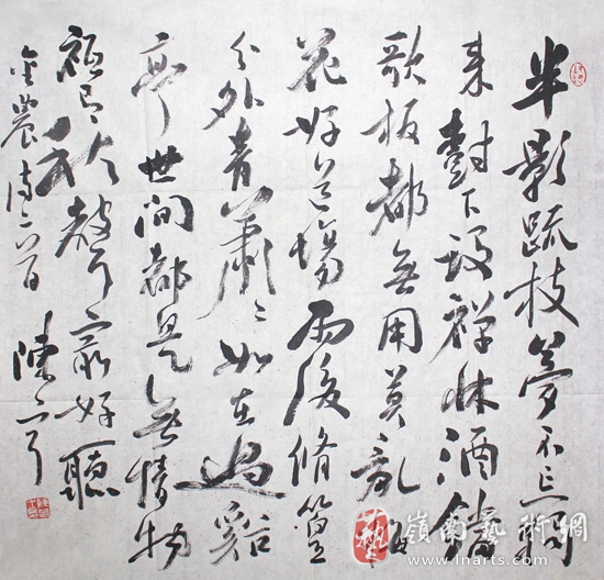陈宁为人厚道,为艺执著,他的书法从传统文化中来,是传统书法文化创新传承所获得的笔墨情缘,有着强烈的表现力。其作品善于抓住书法的本质,用自然的书写来表情达意,显得气顺脉畅,尤其是他的行草书用笔厚重浑劲,结体跌荡多变,布白空灵通透,用墨鲜活,具有较高的审美情趣。