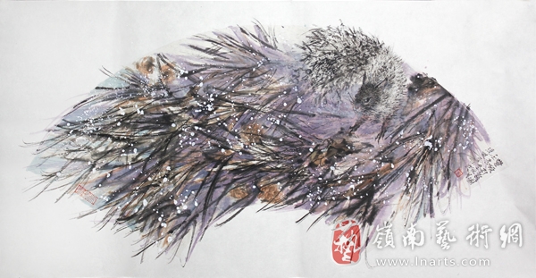 从孙小农参展的这几幅作品中不难看出,他在花鸟创作中对用笔用墨以及色彩运用上的独特个性,从其率意的笔法,墨勾勒出的骨架,似乎可以看到画家在创作时的一种律动和果敢,落笔走墨一笔甩出,似刀锋般。色彩上也很老道,有壁画创作和研究的经验和实践,艳丽而又脱俗,还有对自然花鸟深深的体悟的流露,又展现了诗意境界。
