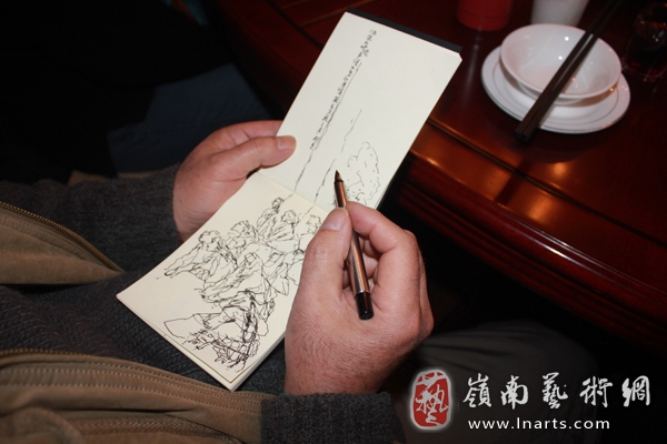 在甘南夏河拉卜楞寺的两日,14位艺术家为收集绘画素材不辞辛苦的奔波在藏民群众中,了解他们的生活风俗,宗教信仰,用手中的相机记录他们脸上的微笑。 中国美术家协会会员、安徽省工艺美术学会副理亊长刘筱元在休息的时候拿出自己随身携带的速写本认真的绘画着,他笔下的速写生动、鲜活,充满灵性和韵味。