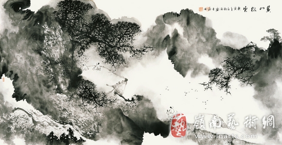 金树勇老师继承传统、师法自然,深受齐鲁画风熏陶,集各家精神所长。以写意手法描绘自然之貌,以澄怀之心挥就笔底江山。大幅作品气势雄浑,有纵横开阖之概;小幅作品运思巧妙,别具文人画韵味。泰山之雄、黄山之奇、峡江之幽、江南之秀……都以浓淡虚实的笔墨表现得淋漓尽致,体现出画家扎实的传统功力以及应物象形的高超水平。