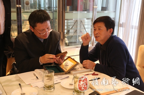 中砚联唐本高执行会长等与台湾沈春池文教基金会秘书长陈春霖就中华砚文化赴台展在交换意见