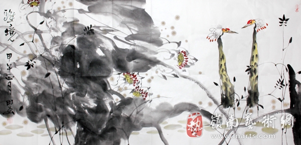 透过他的花鸟画作,透过他笔下斑澜盎然的图像背后,我们能够感受到画家那来自于内心的朦胧诗意,符号化的物性生灵,拙趣横生,空灵晓畅,将现实与幻想拥有了诗化的距离,创造出一个充满生机和颇见现代意趣的意象天地。这个充满诗化的水墨文本,却是缘于吴田玉在自然中游历所获得的感性经验,也寄寓了画家的浪漫情怀和对精神理想的追求。