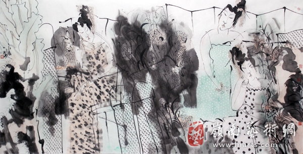 中国传统人物画以神韵为上,受过学院派严格教学训练的黎小强,深谙中国画论之精神,并没有满足于笔墨技法所取得的成就。他在人物画的抽象与具象的造型选择上,毫不犹豫地选择了两者之间的“意象”造型,是更充分表达人物形象之神情,使他创作出的作品充满意境美而诱发观画者无穷的联想,这就是黎小强人物画魅力所在。