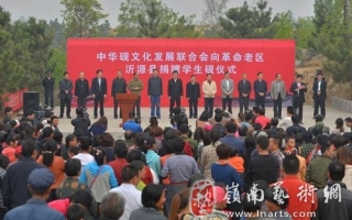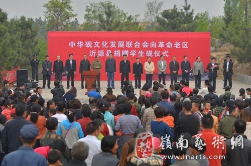 4月20日 上午,“中华砚文化发展联合会向革命老区沂源县捐赠学生砚仪式”在山东沂源举行。中华砚文化发展联合会名誉会长、解放军原副总参谋长张黎上将,第十二届全国政协委员、中华砚文化发展联合会会长、武警部队原副司令员刘红军中将等来到革命老区山东沂源县,将10000方学生砚捐赠给这里的孩子们。