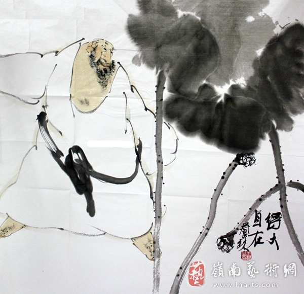 王林的画作,多作佛教题材,但他笔下的罗汉并非其他佛像那样庄严肃穆,而是将罗汉置身于生活中,以自然的法理与佛教的禅理相互融通,因而王林多画“一花一佛一世界”之景。常出现代表佛教明净之物莲花,这样便将画面主体物与周围之景巧妙的融合在一起。画家作为知识分子,他对中国传统文化必然有着深刻的感悟,而他便将自己的感悟投诸于水墨的情趣中。