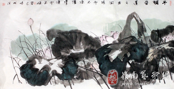 在画家孙成河的水墨中捕捉并表现着极富时代特征的情景,他从普遍中寻找个别、从现象中寻找本质、从平常中寻找典型,并把它们诉诸笔墨,展示给当下城市人的是一种远离都是生活与世态的纯净自然世界。他笔下的《予独爱莲》以墨色去书写荷花之姿,荷花之精神。画面中多用书写性的线条,其中不乏干湿、浓淡、虚实与粗细的变化,可谓笔中有墨、墨中有笔,尤其是以一种不经意的心态,去捕捉不经意之间的现象,给以不经意的笔墨表达,并带有瞬间定格的特点,恰到好处的表现了满塘荷花的向上蓬发的氛围。