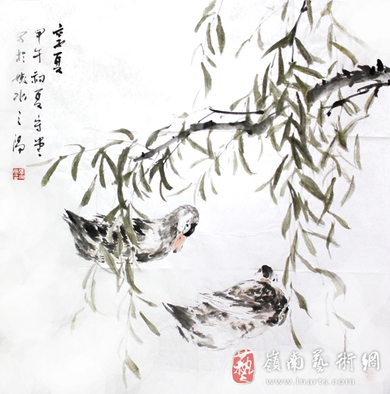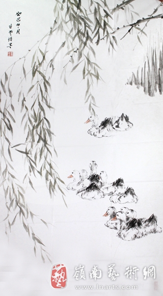 张守堂的写意花鸟画,往往着墨不多但生机盎然,几只野鸭悠然自得游戏于水草之间,神情各异,形态逼真,跃然纸上,且风格不落俗调,耐人寻味。欣赏张守堂的画作,观者往往可以感受到画面上跳跃的笔墨和灵动的笔触,有股清新之风扑面而来,感受到强烈的闲净淡雅的意境。其画作设色淡雅,构图清新,画中用墨法丰富多变,使整个画面富有层次感,体现了他对艺术的理解,对中国传统哲学思想的认识,抒发了创作者内心的情感,表现了独具魅力的审美观念。
