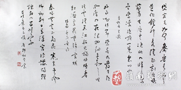 李虎林先生书作有扎实的童子功基础,其研习书法常在碑帖之间徜徉,继承汉隶、魏碑书风,同时又潜心临习“二王”等书作,终归将碑贴相容的书风。他以魏意入行草的个人独特风格,更是其书作上最具代表性的艺术符号,也使得他步入书法艺术殿堂的臻境。