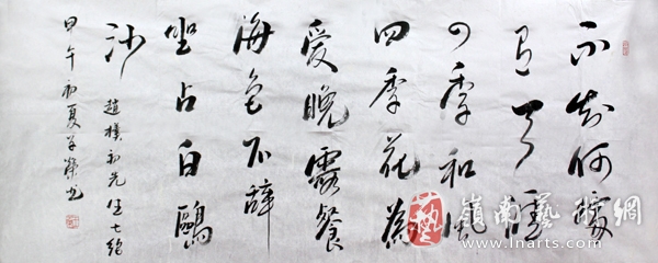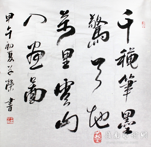 王子荣先生的书作继承了南朝书家王僧虔“书之妙道,神采为上,形质次之,兼之者方可绍于古人”的笔墨精神。他在创作中所强调的是以形写神,形神兼备的气息,往往在点滴笔墨中都透着非同一般的神韵,线条变化有力量感、节奏感和立体感。线条中,有传统功力显现,已有个人所悟,布局线条都闪现着美的律动。
