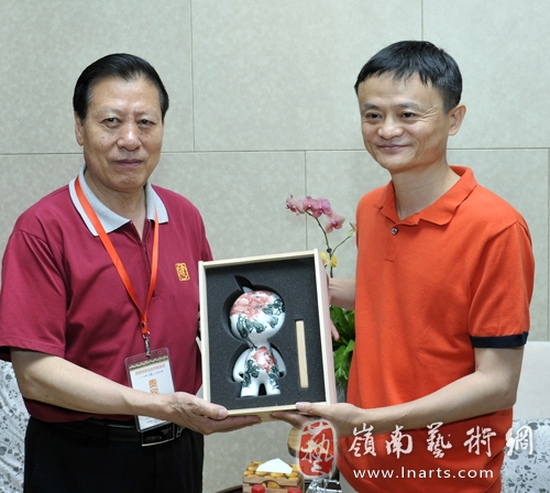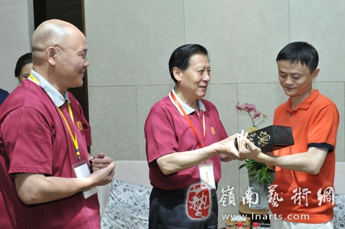 刘红军会长向马云主席赠送由马云书法制砚大师吴笠谷雕制的砚禅砚台