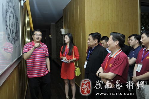 太极禅苑陈伟馆长向刘红军会长一行介绍马云画作
