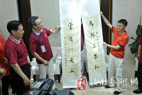 石峰主任向马云主席赠送自撰自书的楹联书法