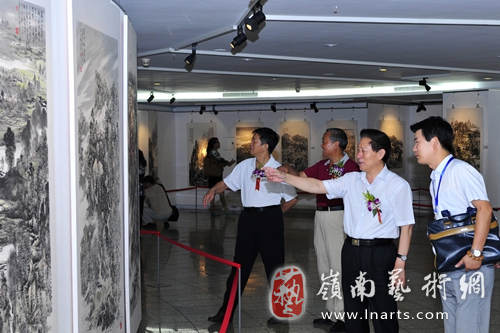 中华砚文化发展联合会刘红军会长、张补旺常务副会长、唐本高秘书长在策展人黄中陪同下参观画展