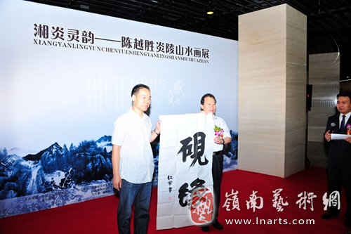 出席此次活动的嘉宾有:中华砚文化发展联合会会长、中华炎黄文化研究会副会长、武警部队副司令员刘红军中将,中国曲艺家协会党组书记、中国文联副主席刘兰芳先生、中国美术家协会副主席、著名国画家尼玛泽仁先生、中国国家画院常务副院长卢禹舜先生、中华砚文化发展联合会常务副会长、原武警部队政治部副主任张补旺少将、中华砚文化发展联合会执行会长,原武警部队黑龙江总队政委唐本高少将、著名书法家、北京市文联副主席彭利铭先生、湖南省委宣传部副部长余定平先生、炎陵县委宣传部长肖锦霞女士、炎陵县委副主席张兴林先生、株洲县文联主席姜满珍女士、广东省玉器商会常务副会长、南方玉博城董事长江功尧先生、广州华林玉器商会副会长、南方玉博城总裁张小兵女士、著名摄影家、中华光影平面油画艺术学会会长于江先生、中央电视台七套农影中心总编辑周祚先生、二炮文工团、著名表演艺术家杨大鹏先生、著名导演艺术策展人李涛先生、中国宗教艺术研究会会长、中华百方古刹主题画创作者韩光森先生、青年导演、文化月刊事业发展部主任单志单先生、中国国家画院著名人物画家阳小毛先生等二百余人出席了“湘炎灵韵——陈越胜炎陵山水画展”的开幕式。