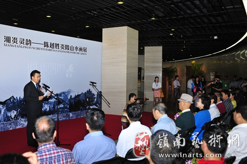 中国炎帝文化艺术研究会会长、著名山水画家陈越胜在画展开幕式上致辞