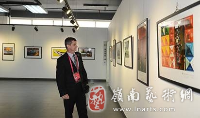 (观众在全国优秀摄影作品联展上欣赏摄影师的作品佳作)