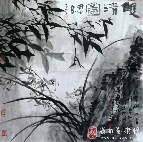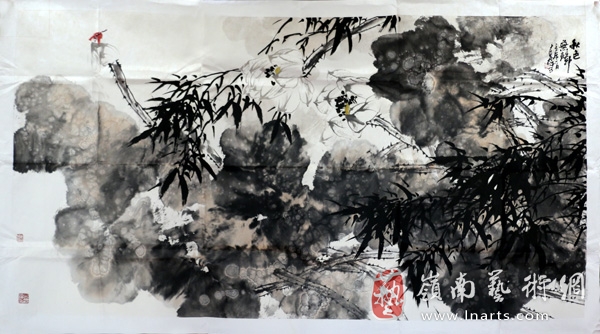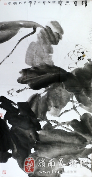 李辉先生善画花鸟,且多为荷花、兰草等题材。在李辉先生画作中,与传统荷花、兰草题材有很大的区别,墨色晕染或昏暗、或浅淡,呈现出的是厚重与清丽兼具,空濛与严实同在的水墨情怀。其画面用色较少,但往往都是点睛之笔,从而提升了画作视觉上的冲击力。整体而言,李辉先生的画作笔墨上呈现的是天地和谐、清新写实的当代社会价值审美观和画家内心对时代昂扬精神的赞美。