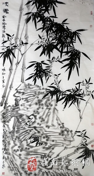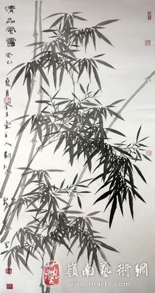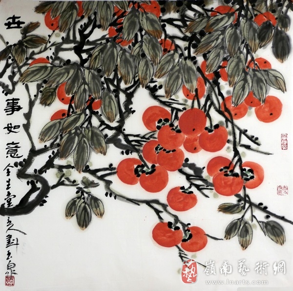 刘玉泉先生长期研习花鸟画,观其画作,更多地继承了传统文人画的意蕴。以淡墨出竹竿几枝,坚劲有力;浓墨中锋写出竹叶,干净利落。磐石更多的以枯笔勾出,稍事皴擦,苍劲厚重。除了传统题材,刘玉泉也画一些寓意吉祥的题材,明丽的色彩使画作显得喜气洋洋。通过他的画作,我们可看出其扎实深厚的笔墨功夫,挥洒自如,收放有度,是值得收藏与欣赏的精美画作。