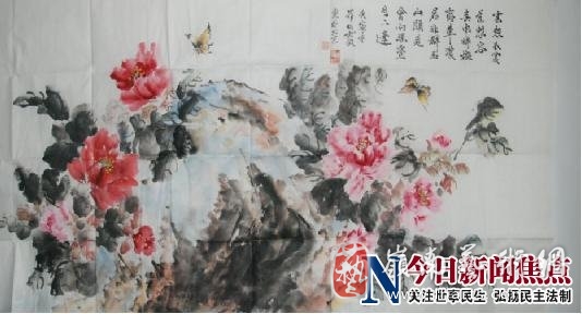 为了采访罗虹霞,笔者先后数次往返北京昌平她所在的工作室,聆听她关于绘画与艺术人生丰富见解的同时,也为形成这篇稿件理顺了有序的开端。但凡喜欢罗虹霞牡丹绘画作品的人都知道,她的牡丹创作之美在书画界被广传为佳话,罗虹霞的牡丹以色彩丰富,娇艳动人而见长,在那次引人瞩目的书画展上,罗虹霞和她的作品一样,再次引起引起各大新闻媒体以及喜欢她书画作品人们的广泛关注,欣赏罗虹霞的牡丹作品,总是给人尽的美感,每一幅作品都能在千娇百媚的意境中读到春天唯美的气息,罗虹霞告诉笔者,牡丹绘画需要创作上特有的技巧,无论是从花头、花朵、枝干、乃至到叶片都要有它独特结构,要想创作出上乘的作品,首先要了解它的结构规律和生长特征,创作时才能表现出牡丹作品的不同质感和意境。牡丹素有谷雨花、富贵花和花中之王的美称,她被视为吉祥、富贵的象征,牡丹还是国花,正如文人描写的那样,徐凝何人不爱牡丹,占断城中好物华。