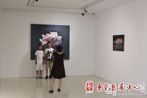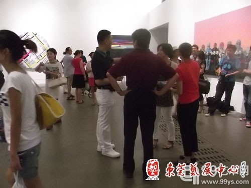 展厅内艺术爱好者在作品前合影